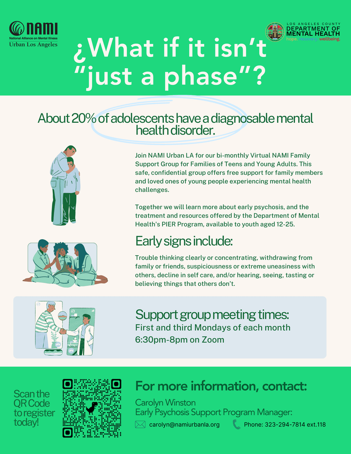 If you have any questions, feel free to call Carolyn Winston, at (323) 294-7814 (Ext. 118) or email carolyn@namiurbanla.org.